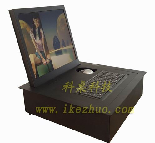 液晶顯示器翻轉(zhuǎn)器主要應用于各種高檔會議廳,交易廳,高級多媒體網(wǎng)絡系統(tǒng),辦公家私場所,該翻轉(zhuǎn)器一般適用于22寸以下液晶顯示器(也可定作更大點),當打開翻轉(zhuǎn)器時液晶顯示屏會自動翻轉(zhuǎn)成需求角度(特殊要求也可以另行設計),鍵盤也同時會自動升起與桌面齊平,當不使用時,顯示屏可自動翻轉(zhuǎn)隱藏于桌面內(nèi)部,產(chǎn)品具有防盜、防塵保持桌面平整,美化桌面等功能。