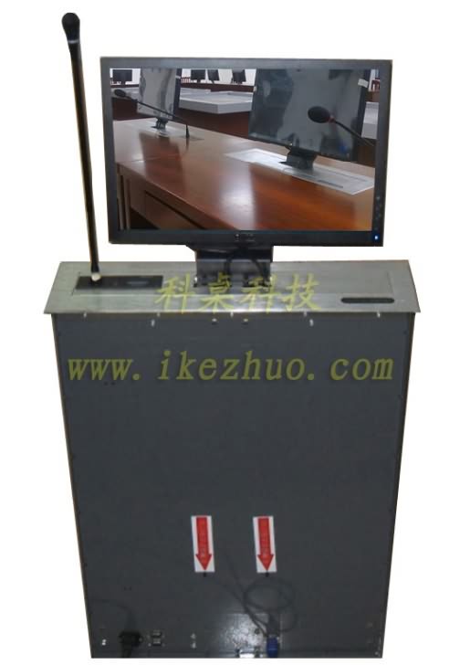 19寸科桌液晶屏升降器需要使用顯示屏?xí)r,隱藏在會議桌內(nèi)部的升降機把顯示屏從會議下面升到桌子表面;當不使用顯示屏?xí)r,升降機自動下降,顯示屏隱藏在會議桌內(nèi)部,防盜、防塵;保持桌子表面的平整和美觀。