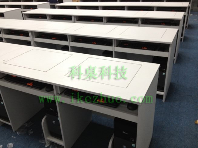 科桌翻轉電腦桌主要應用于各種大型會議室,學術報告廳,計算機教室,多媒體教室、多媒體會議室、多媒體電子教室、多媒體電教室、機房、培訓中心,展廳內及多功能會議廳等。普通教室與計算機教室模式相互切換快速,不阻礙老師與學生之間目光交流