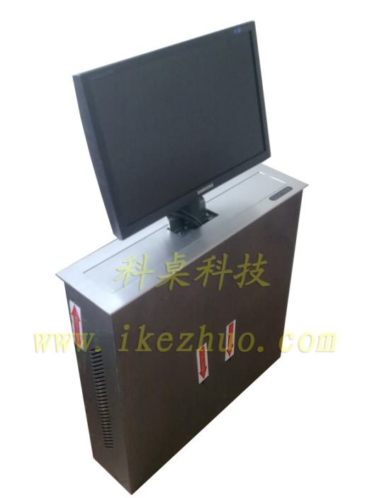 從會議桌下面升到桌面、當不使用顯示器時,升降機自動下降,顯示器隱藏在會議桌內,起到防塵,防盜,保持桌面平整美觀。