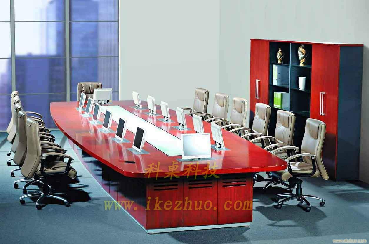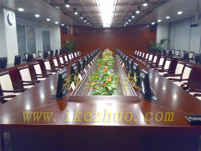 從會(huì)議桌下面升到桌面、◆當(dāng)不使用顯示器時(shí),◆升降機(jī)自動(dòng)下降,◆顯示器隱藏在會(huì)議桌內(nèi),◆起到防塵,◆防盜,◆保持桌面平整美觀。